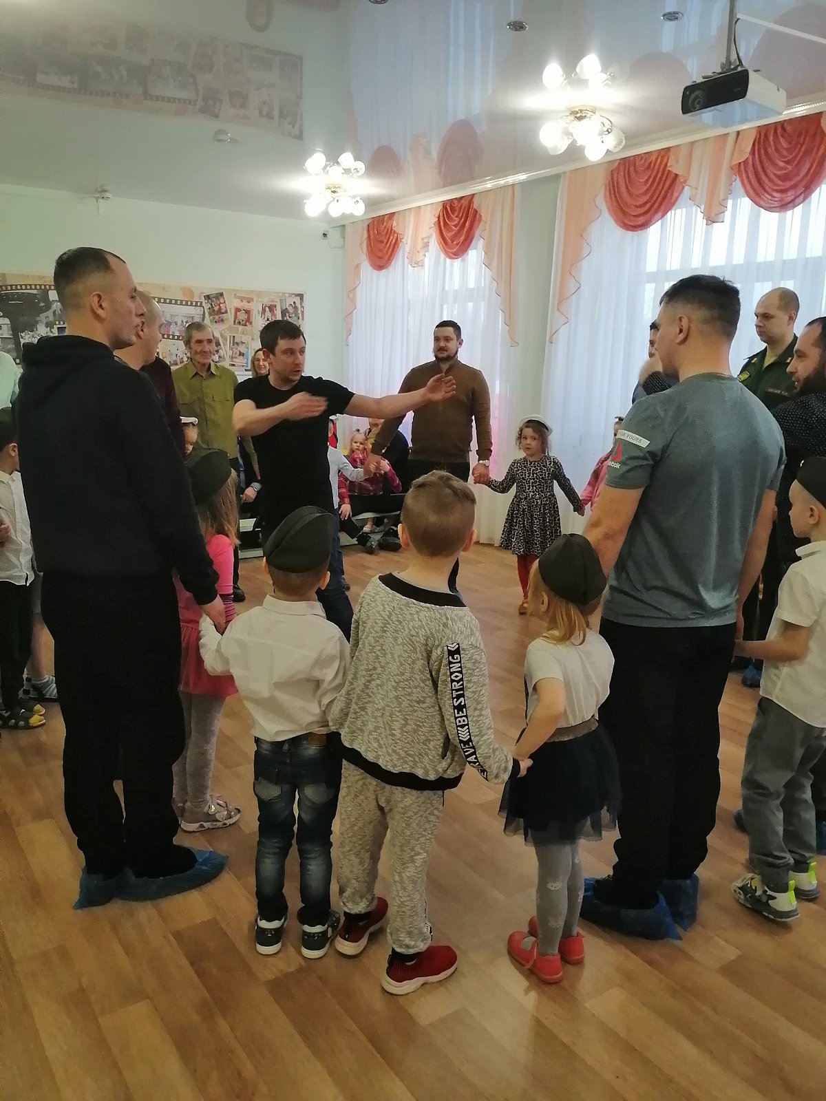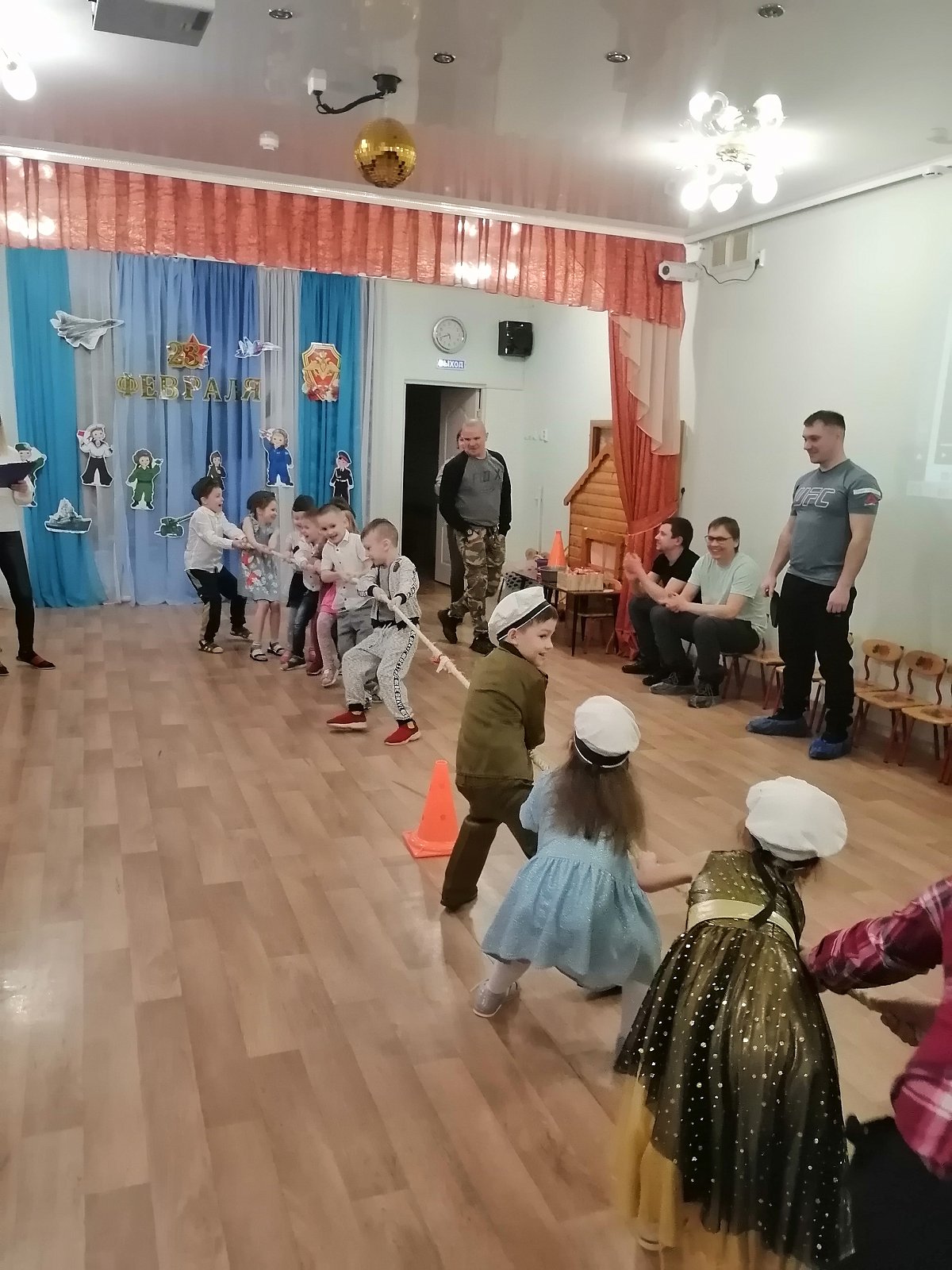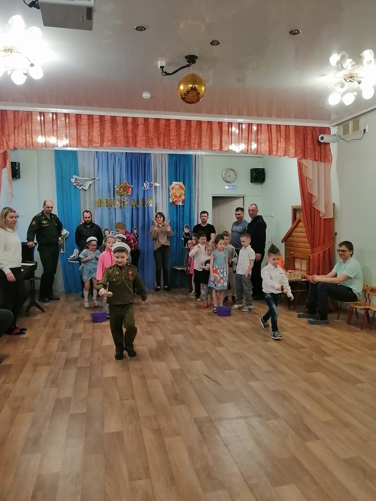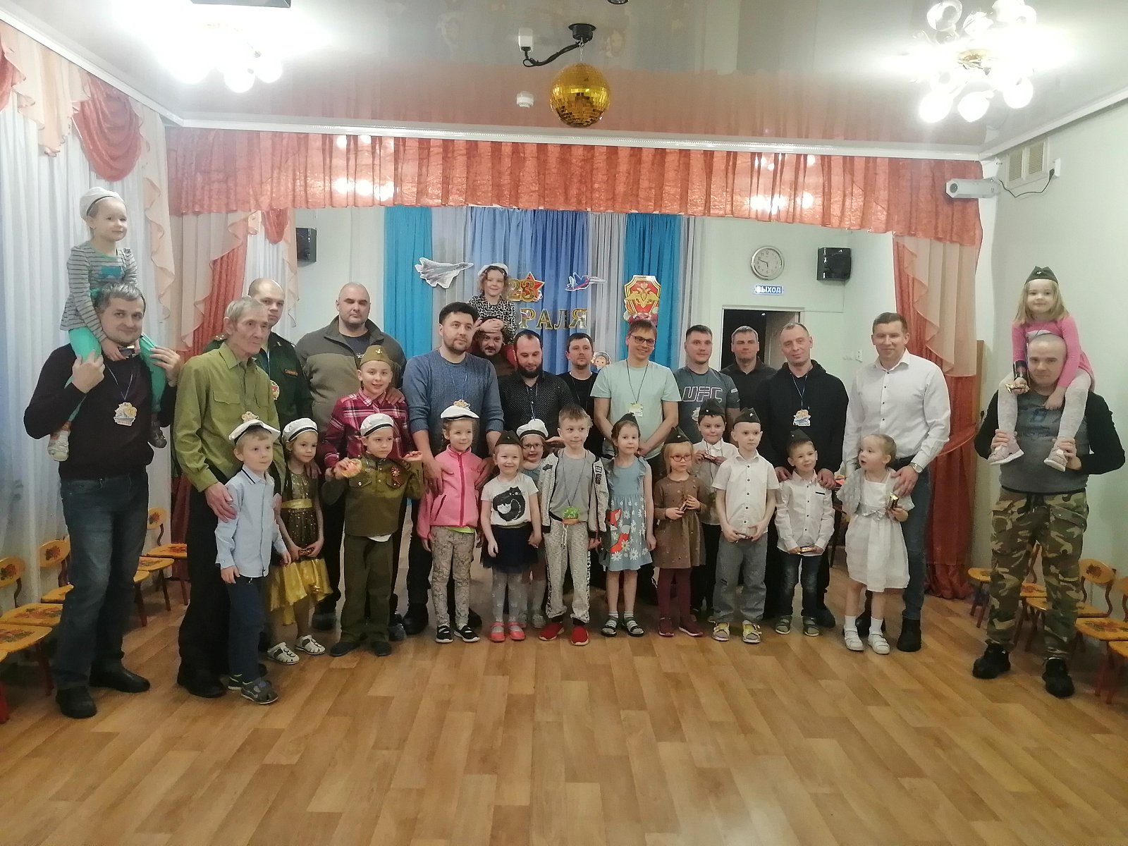 21 февраля в нашем детском саду состоялась встреча в Семейном клубе, которая была посвящена этому празднику. На встречу были приглашены папы, дедушки, старшие братья воспитанников, а так же все желающие. Дети вместе со взрослыми участвовали в соревнованиях, отгадывали загадки, пели песни, танцевали и читали стихотворения.