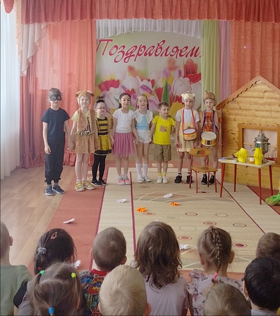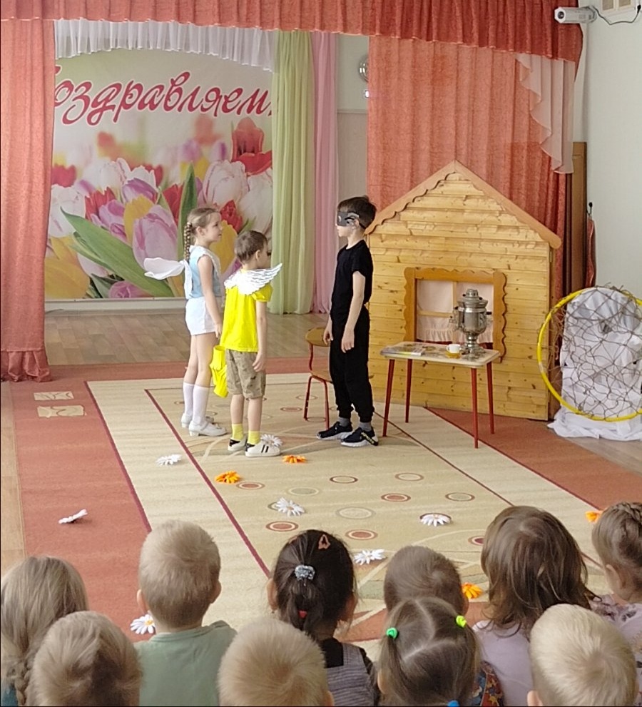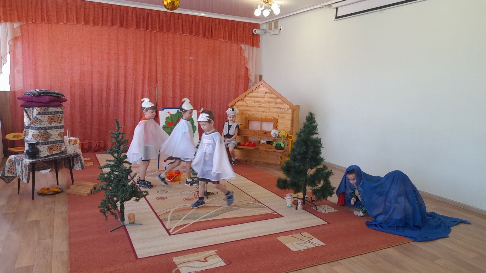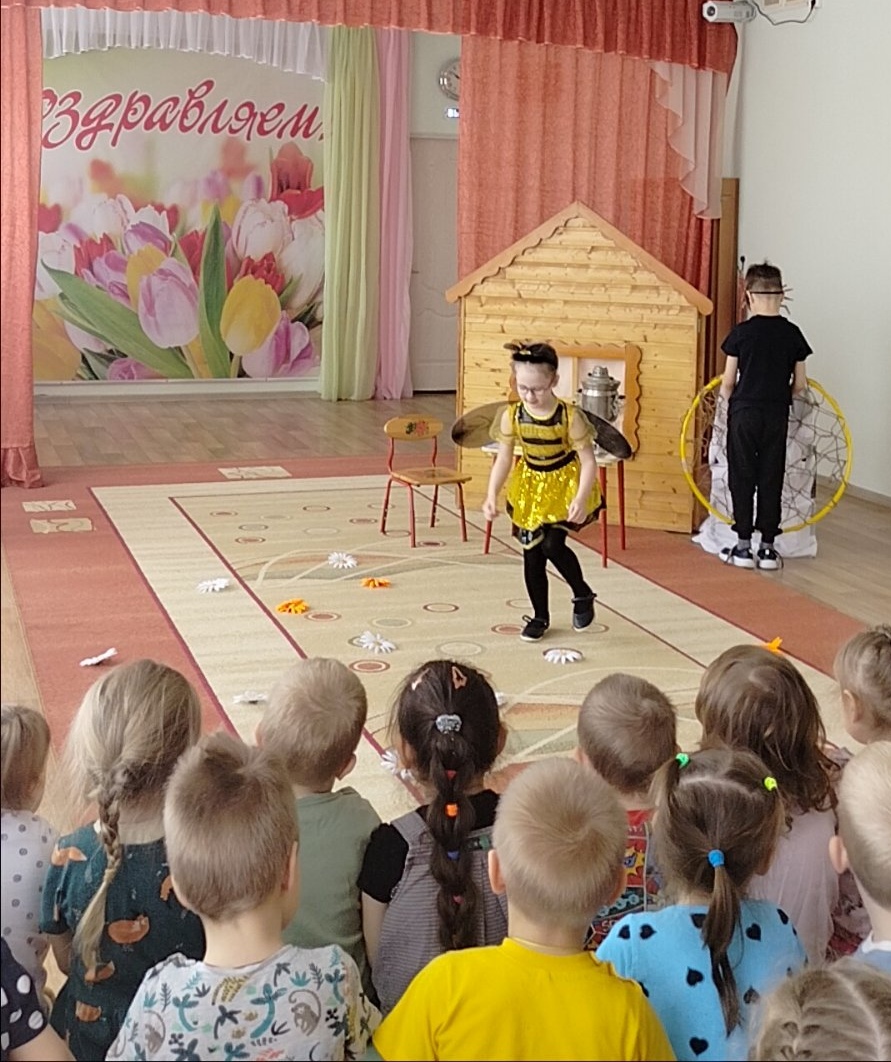 В течение недели воспитанники старших и подготовительных групп показали спектакли для младших дошкольников: «Добрый паучок» и «Гуси-лебеди». Дети с большим удовольствием перевоплощались в персонажей сказок. Ребята смогли показать свои театральные способности, передавая характер сказочных героев.