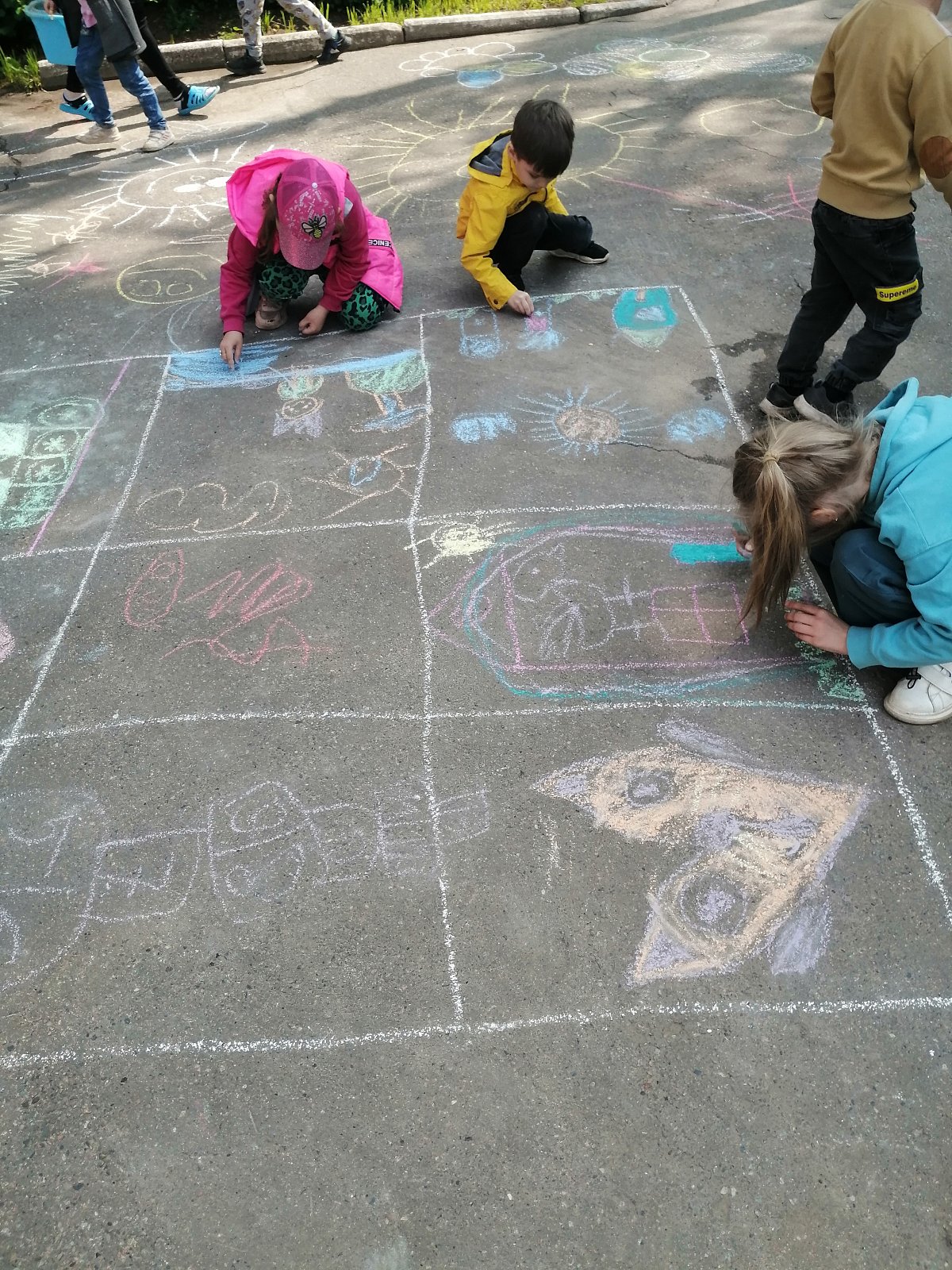 Праздник продолжился рисованием на асфальте цветными мелками. В детских рисунках можно было увидеть природу, друзей, родных и близких людей. Все рисунки были разными, но объедены одной общей темой «Счастливое детство».
