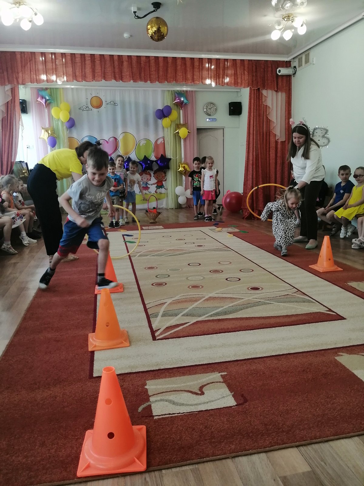 1 июня в нашем детском саду прошёл музыкально-спортивный праздник «Здравствуй, солнечное лето!». В спортивных соревнованиях приняли участие две команды: команда подготовительной группы №10 «Пчёлки» и команда старшей группы № 9 «Мотыльки». Ребята вместе с капитанами команд Светланой Михайловной и Анастасией Викторовной подготовили девизы. Все вместе активно участвовали в играх, необычных эстафетах, читали стихи, пели песни про спорт и дружбу, танцевали и с удовольствием отгадывали загадки. Настроение праздника создали творческие ведущие – музыкальные руководители: Татьяна Владимировна и Светлана Ивановна. Все педагоги старались сделать так, чтобы этот праздник надолго запомнился детям. Было приятно видеть радостные детские лица и слышать весёлый детский смех.