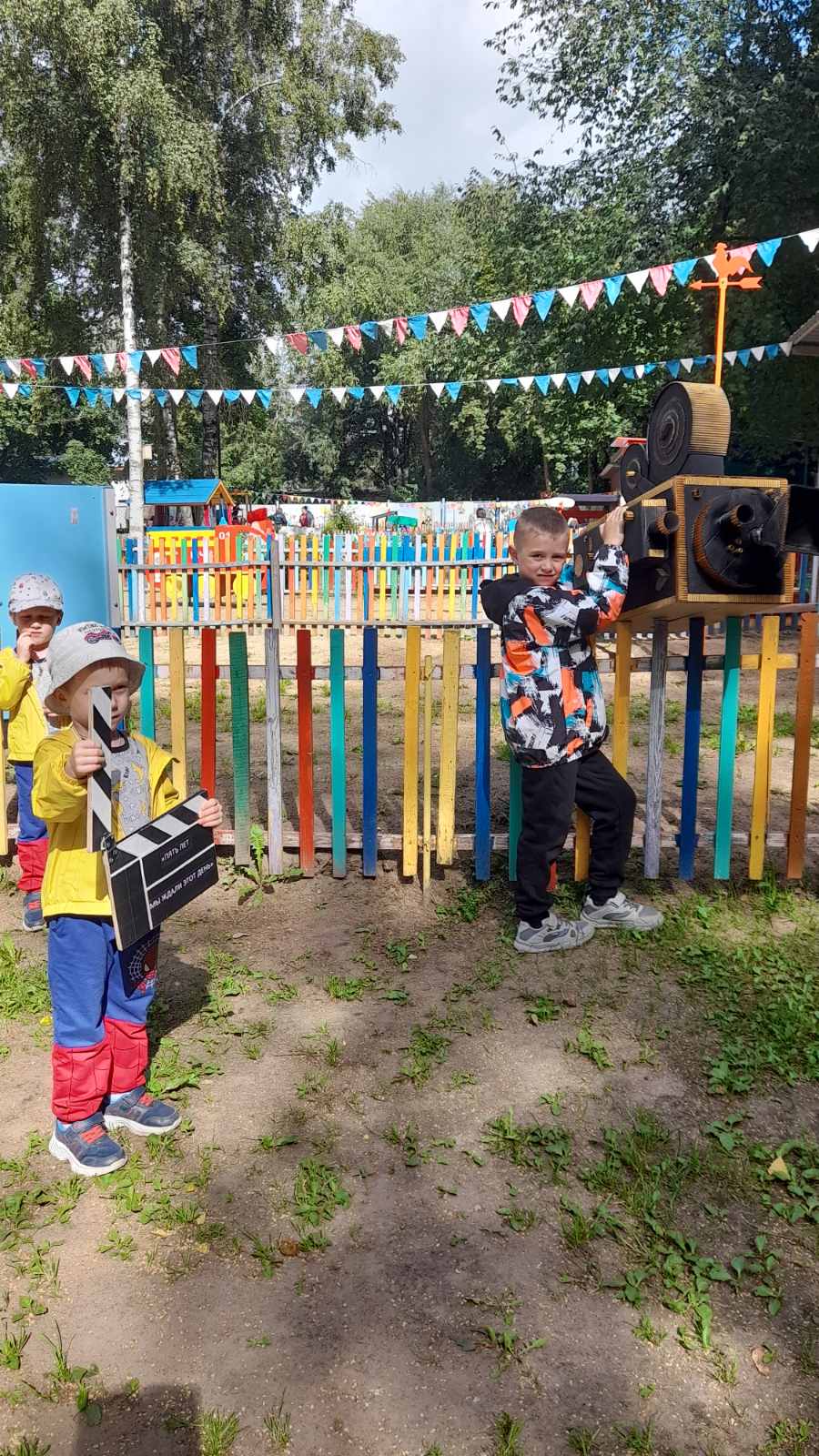 Сегодня в нашем ДОУ было проведено мероприятие «Отмечаем день кино». В ходе беседы и просмотра презентации «Волшебный мир кино» воспитанники путешествовали в прошлое кино, познакомились с профессиями режиссёра, оператора, сценариста, гримёра, художника по костюмам. Детям были представлены инструменты и атрибуты киноиндустрии - камера оператора, «хлопушка» помощника режиссёра, кисть гримёра, костюмы для съёмок детского фильма. Воспитанники участвовали в миниатюре «Мы актёры», увлекательной викторине «Узнай героя», слушали и узнавали песни из мультфильмов, а также посмотрели любимый мультфильм взрослых и детей - «Ну, погоди!»
