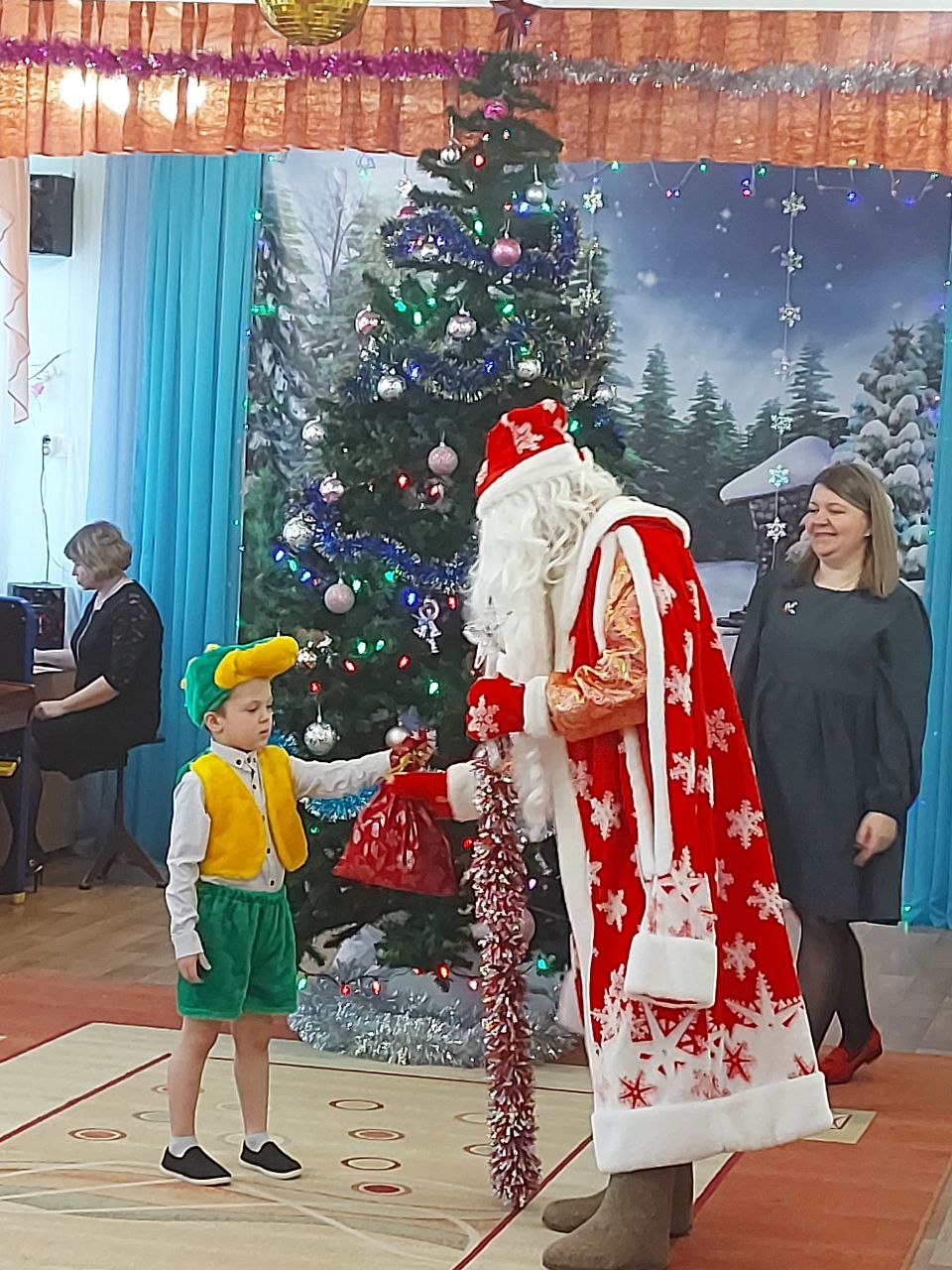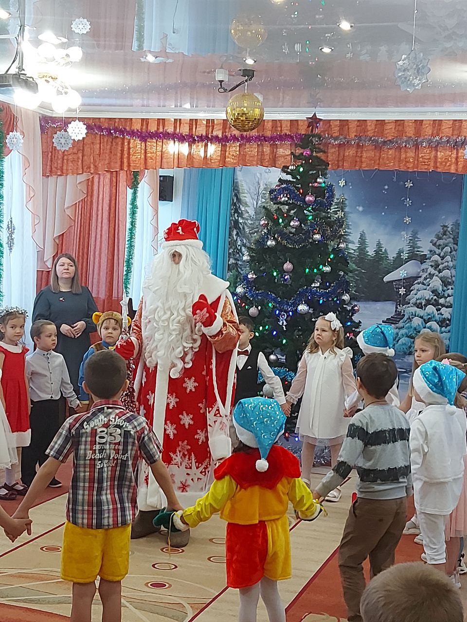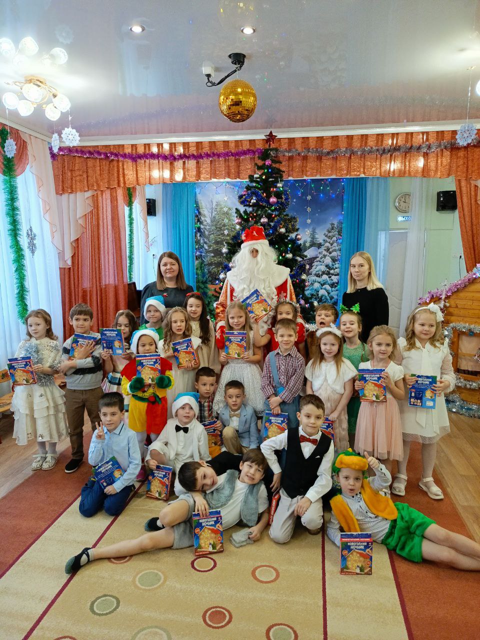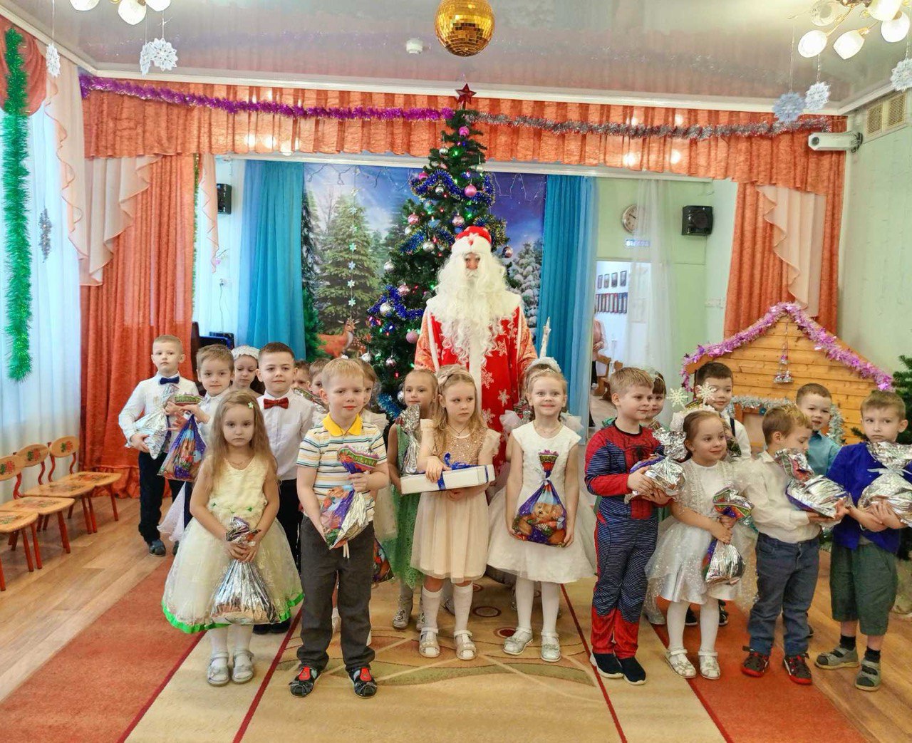 С 22 по 28 декабря в нашем детском саду были проведены новогодние утренники во всех возрастных группах. Сказочно украшенный музыкальный зал, сверкающие огоньки, нарядная ёлка, увлекательные танцы и хороводы, стихи, загадки, веселые игры подарили ребятам и их родителям праздничное новогоднее настроение. Восторженные эмоции переполняли всех присутствующих в зале – и детей, и гостей. Ребята были в восторге от неожиданных новогодних сюрпризов и встреч со сказочными героями.