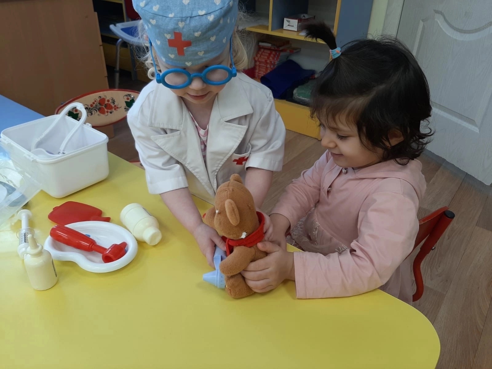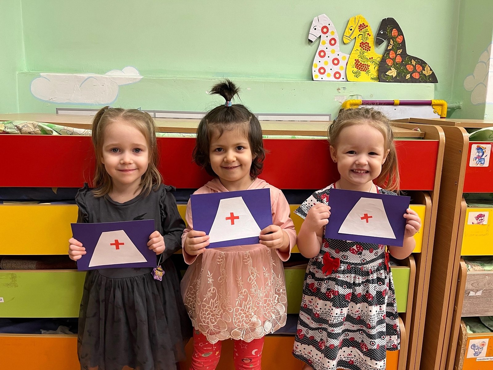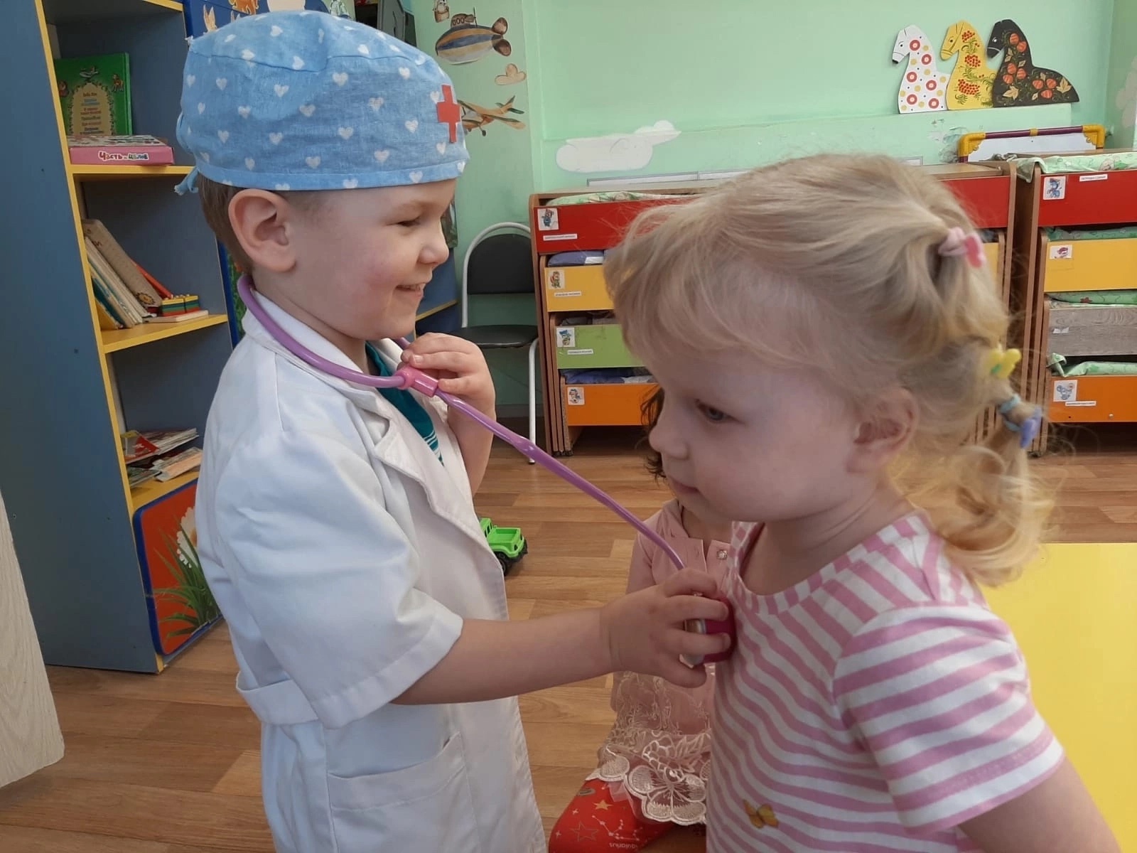 Так же ребята рассмотрели множество иллюстраций и сыграли в увлекательные сюжетно-ролевые игры «Строитель» и «Врач». И все вместе прочитали замечательную сказку «Айболит».