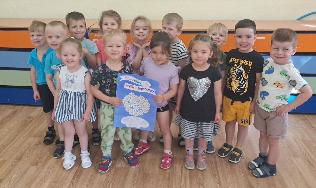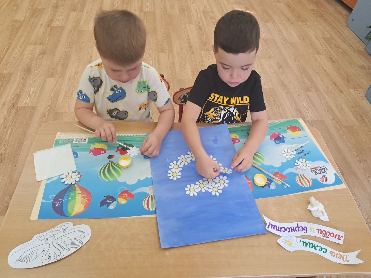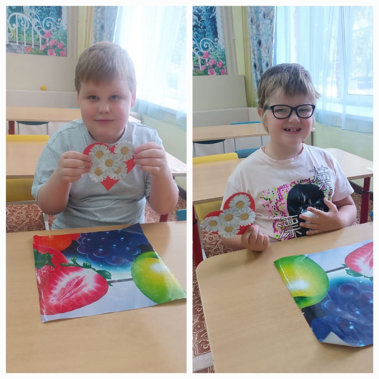 Воспитанники 9 группы с небольшой помощью воспитателей сделали поздравительную открытку с символом праздника- ромашка. А воспитанники группы 5 сделали чудесные открытки в День семьи, любви и верности. Они очень старались и получилось замечательно!