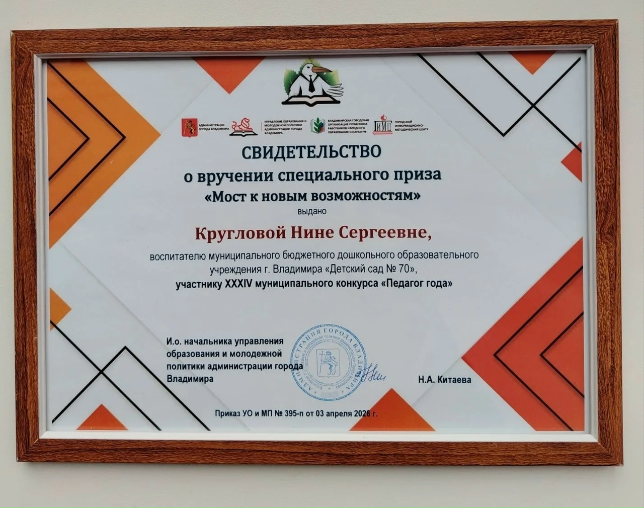 Поздравляем вас с участием в конкурсе "Педагог года 2026" и с заслуженной наградой "Мост к новым возможностям".